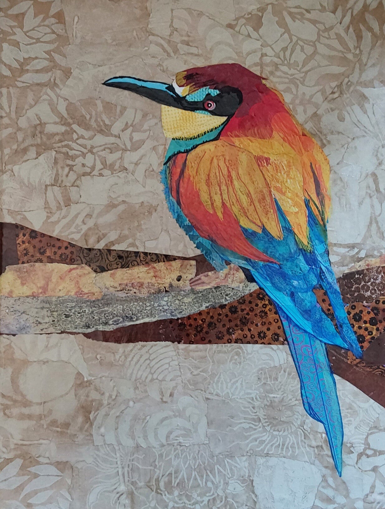 Watching YouTube videos taught me to pour acrylic paint. Lately I have been experimenting with Monoprinting patterns on paper with Gelatin Plates and using the painted papers to create collages. Teaching these new techniques at demonstrations and workshops have given me opportunities to share these freeing and enjoyable art forms.